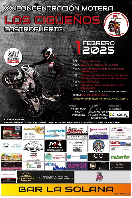 Os esperamos con los brazos abiertos a la XX Concentración Los Cigüeños, que celebraremos en Castrofuerte, provincia de León, el día 1 de febrero de 2025 a partir de las 15,50 horas.