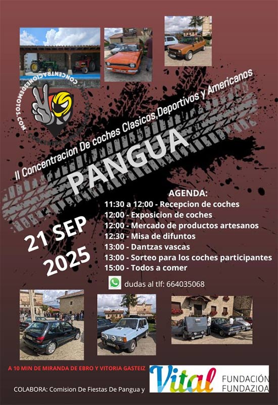 A solo 10 minutos de Miranda de Ebro y Vitoria-Gasteiz, el encantador pueblo de Pangua será escenario de un evento único para los amantes del motor: la segunda edición de su concentración de coches clásicos, deportivos y americanos.