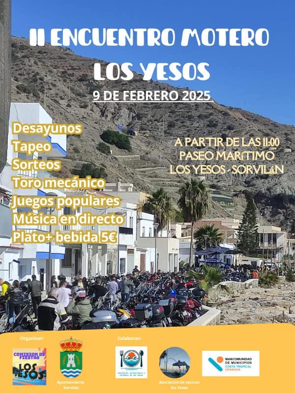 Tras el éxito del primer encuentro celebrado el año pasado, ven a divertirte en el II ENCUENTRO MOTERO EN LOS YESOS ¡ Tienes una gran cita motera el 9 de febrero a partir de las 11:00h! Únete a nosotros para vivir la pasión de las dos ruedas.