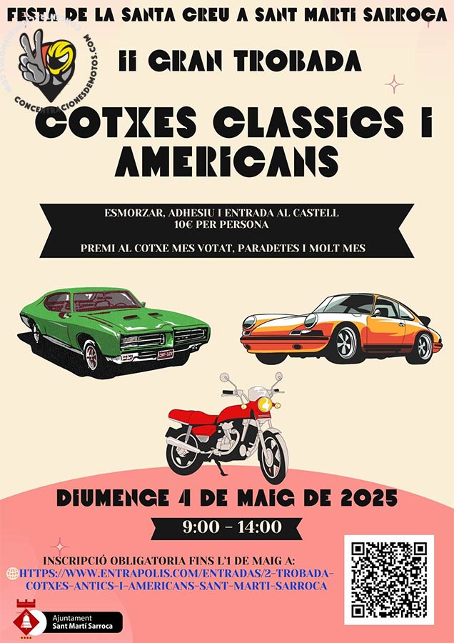 Dentro del marco festivo de la Festa de la Santa Creu en Sant Martí Sarroca, se celebrará la II Gran Trobada de Cotxes Clàssics i Americans, un evento imprescindible para los amantes del motor y la historia automovilística.