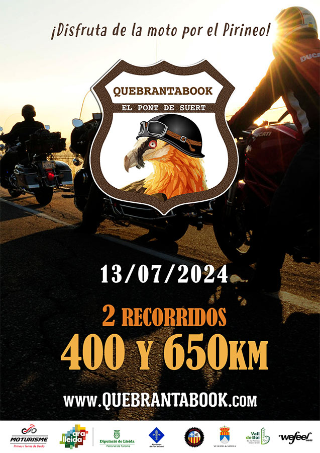 Bienvenidos a una nueva edición de QUEBRANTABOOK, un evento motociclista no competitivo que transcurre por las bellísimas y más que espectaculares carreteras del Pirineo catalán y aragonés.