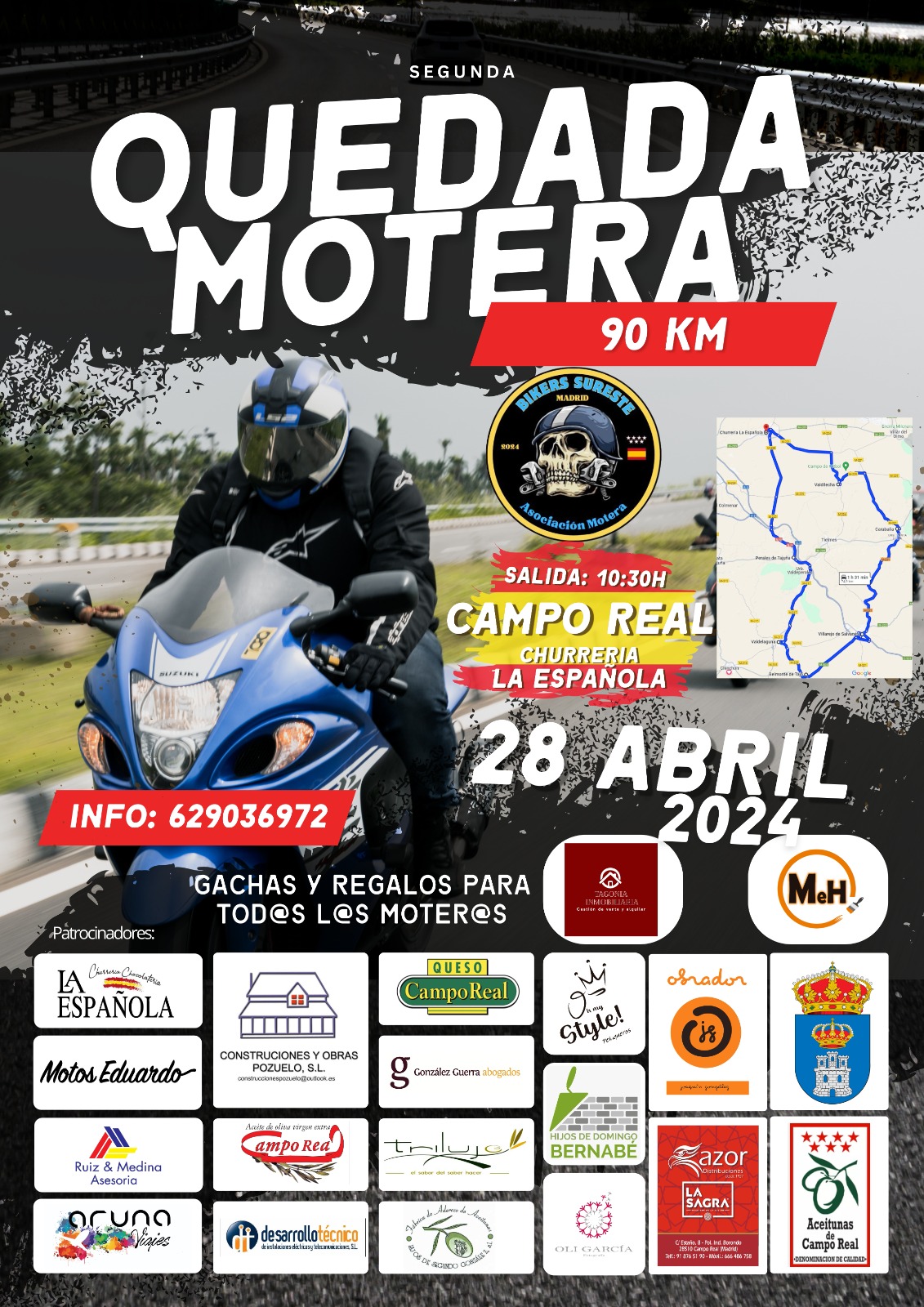 La inscripción es gratuita, habrá regalos y gachas para todos los moteros después de la ruta!!