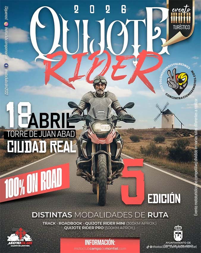 Quijote Rider es un evento mototurístico que se celebra en el Campo de Montiel (Ciudad Real), con salida y llegada en la villa donde Don Francisco de Quevedo dejó su huella como Señor e ilustre figura.