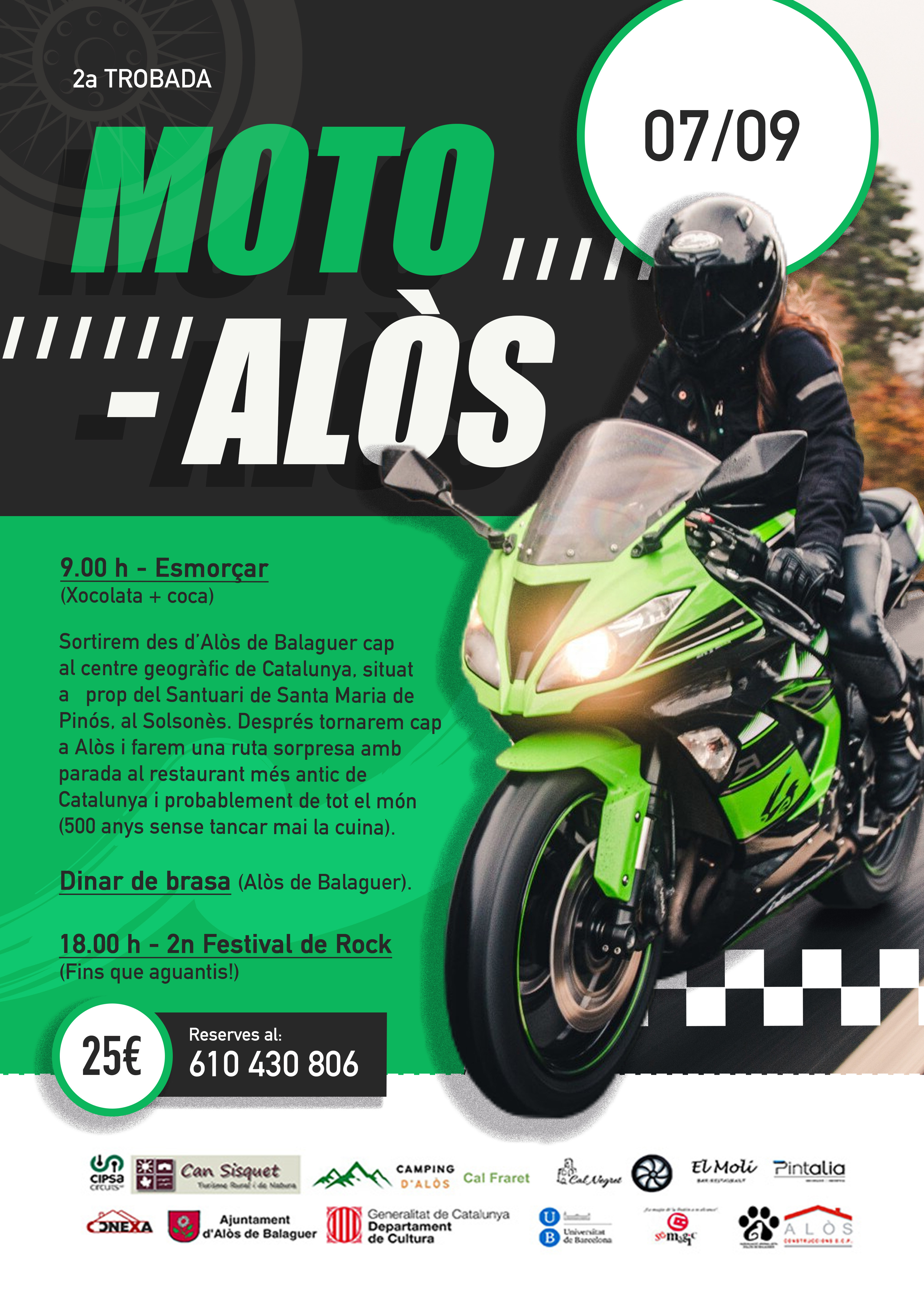 Bienvenido a nuestro encuentro de motos de carretera Motoalos 2024 en Alos de Balaguer en la provincia de Lleida con Ruta sorpresa con desayuno en Alos de Balaguer y llegada con comida de brasa en Alos de Balaguer con visita a el restaurante más antiguo del país